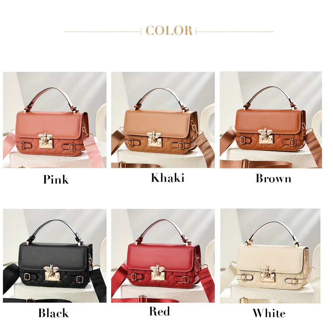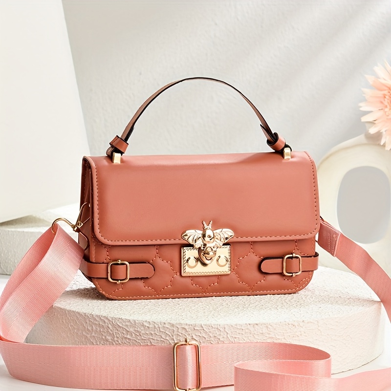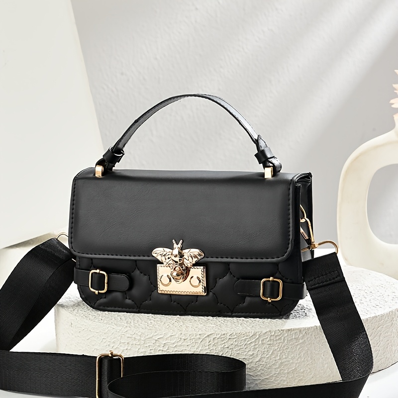 ✨ Elevate your look with this luxury faux leather top handle handbag, featuring golden-tone hardware and a chic bee buckle for bold, elegant, all-eyes-on-you glamour. 👜