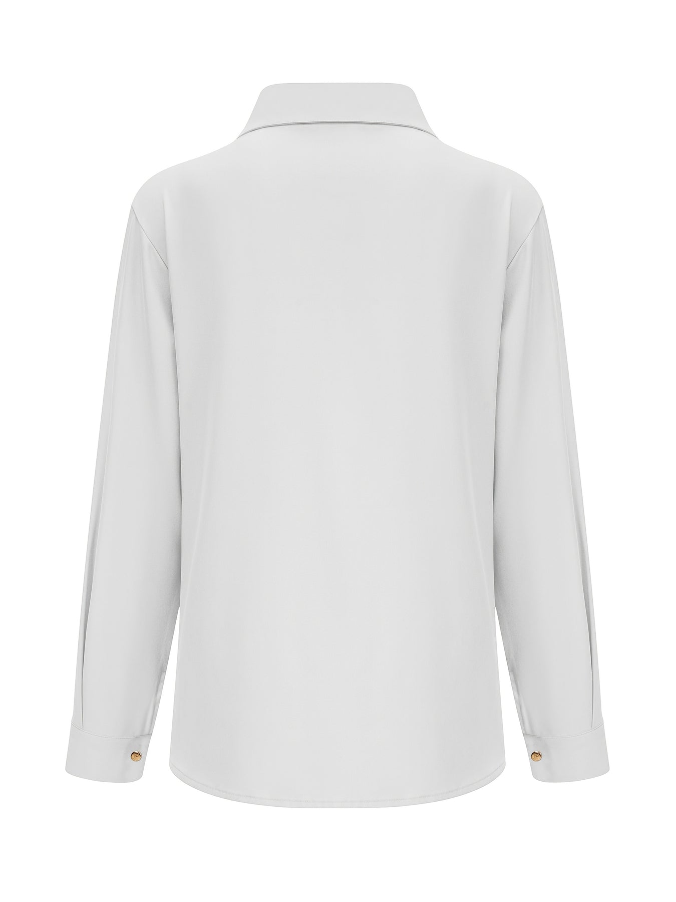 White blouse with gold buttons on a mannequin against a neutral background