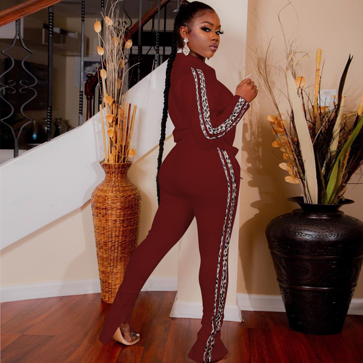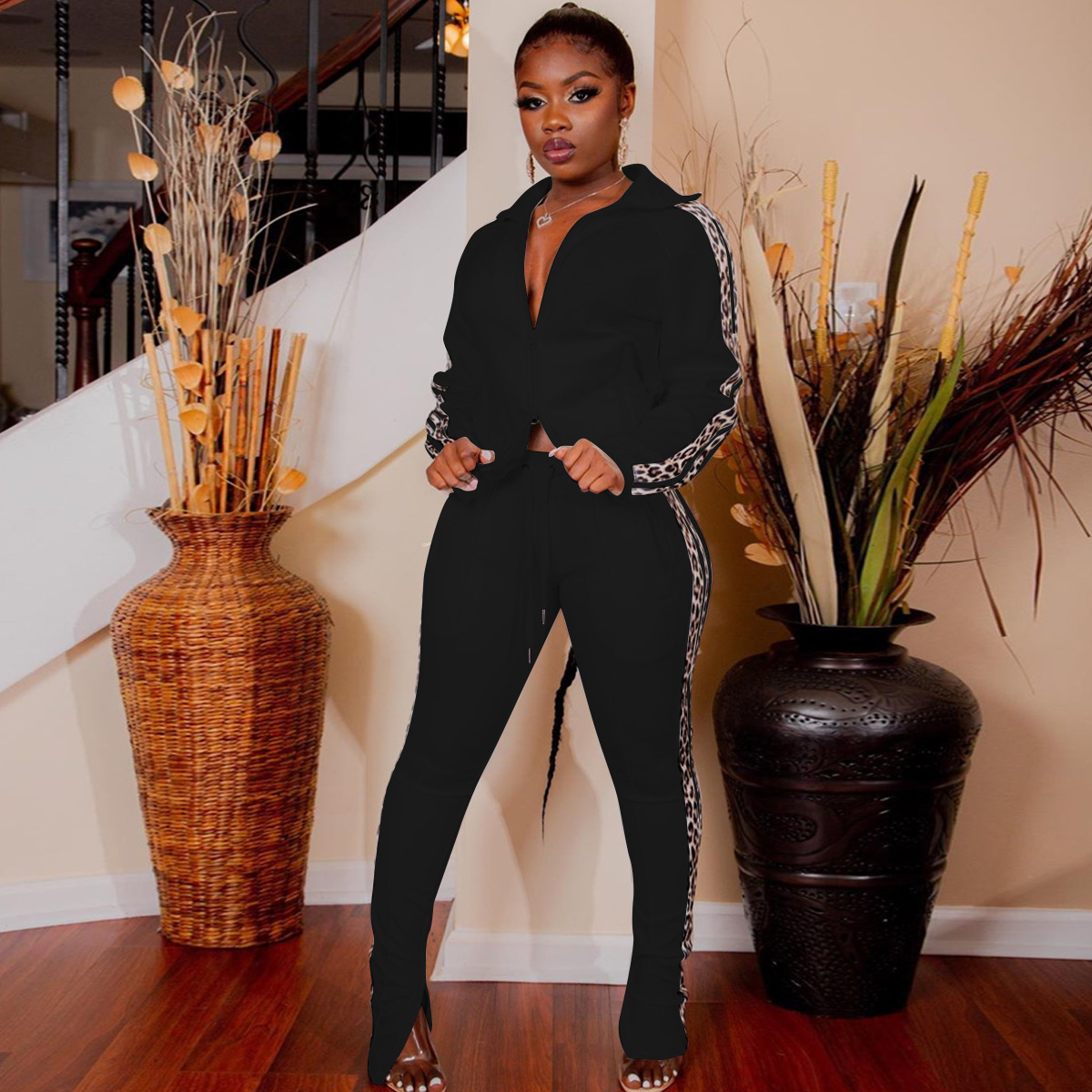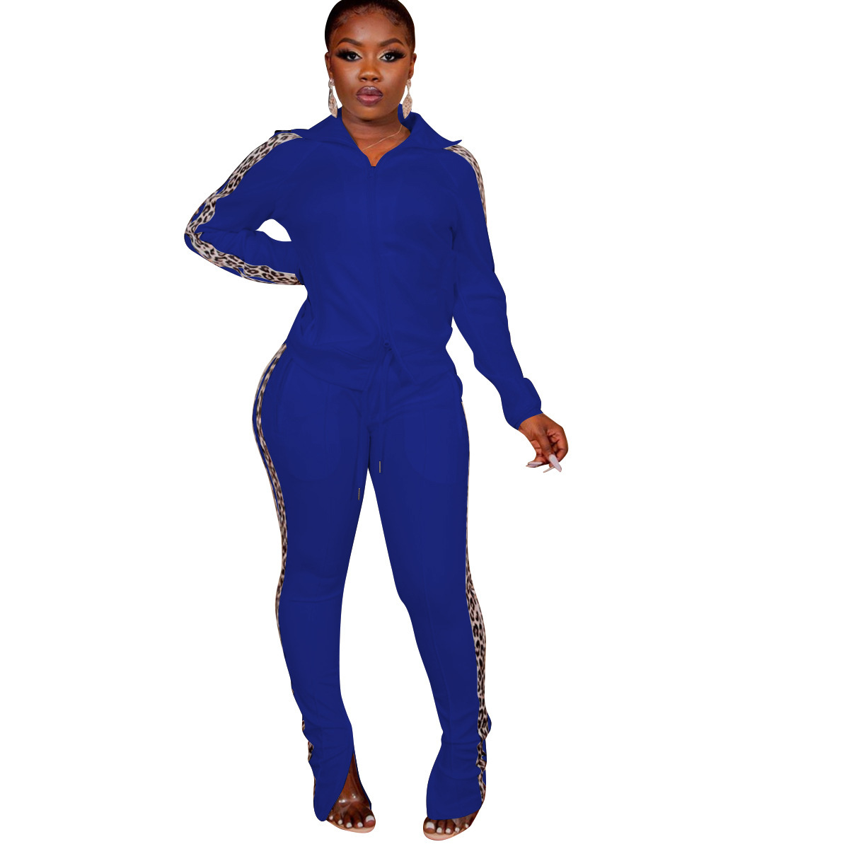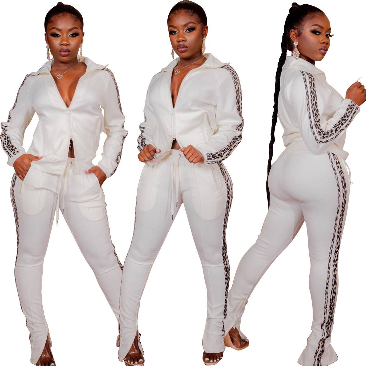 Just Hot Sexy 2Pcs Cotton Blend Lepard Strip Women's Tracksuits in Plus Sizes