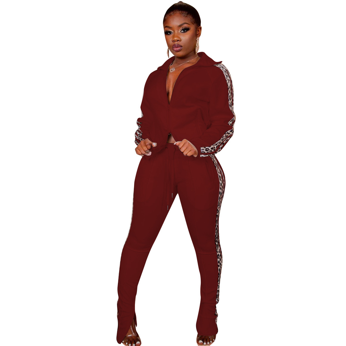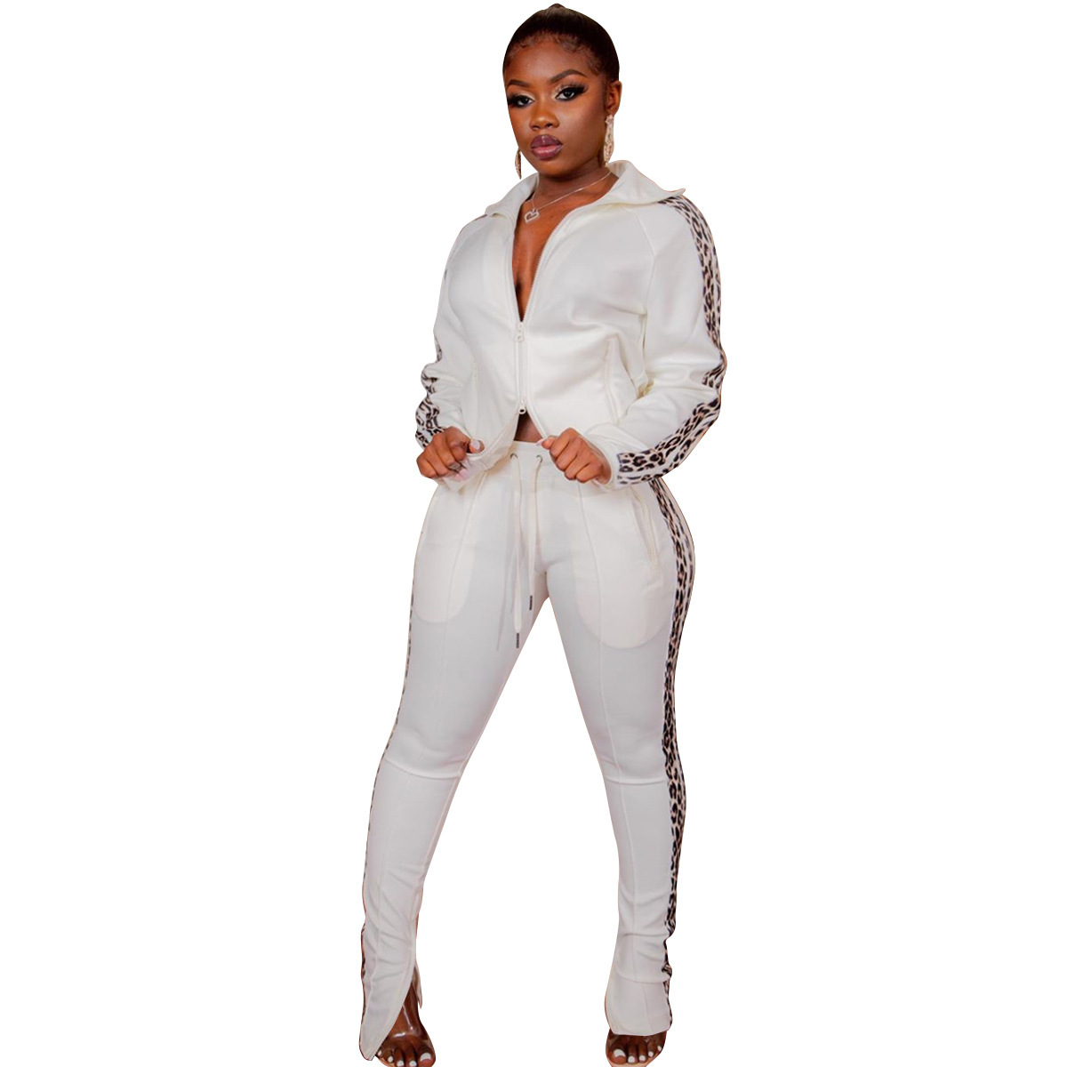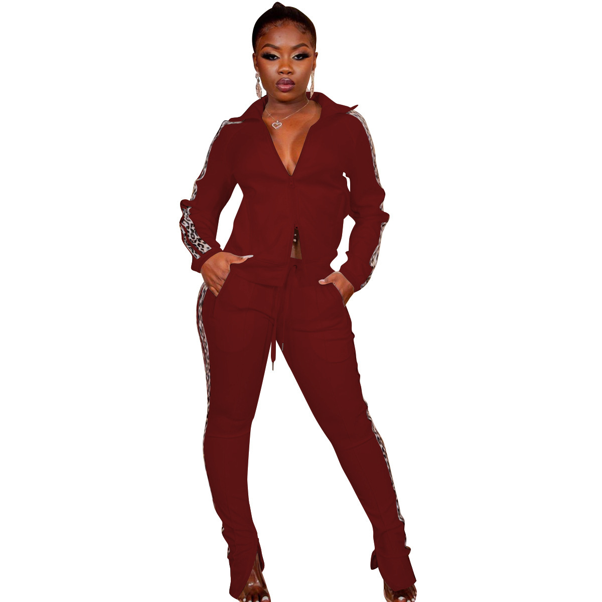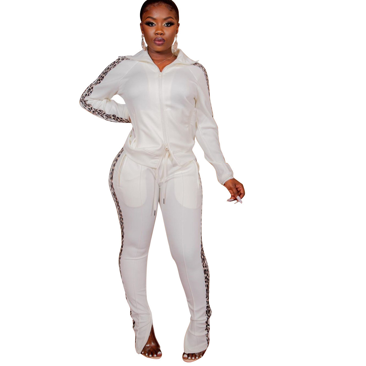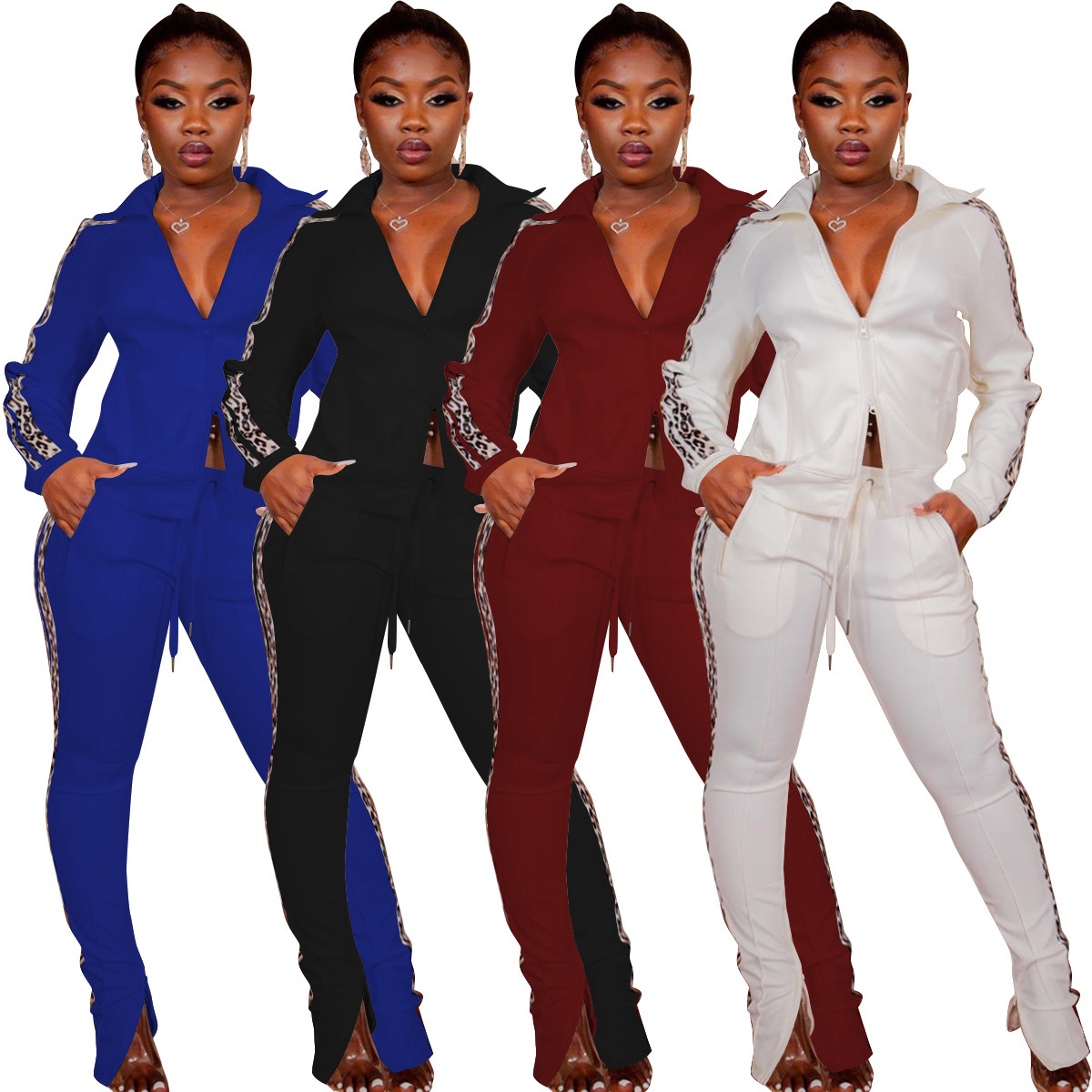 Curve-enhancing Zipper Collard Jacket & Pants Tracksuits