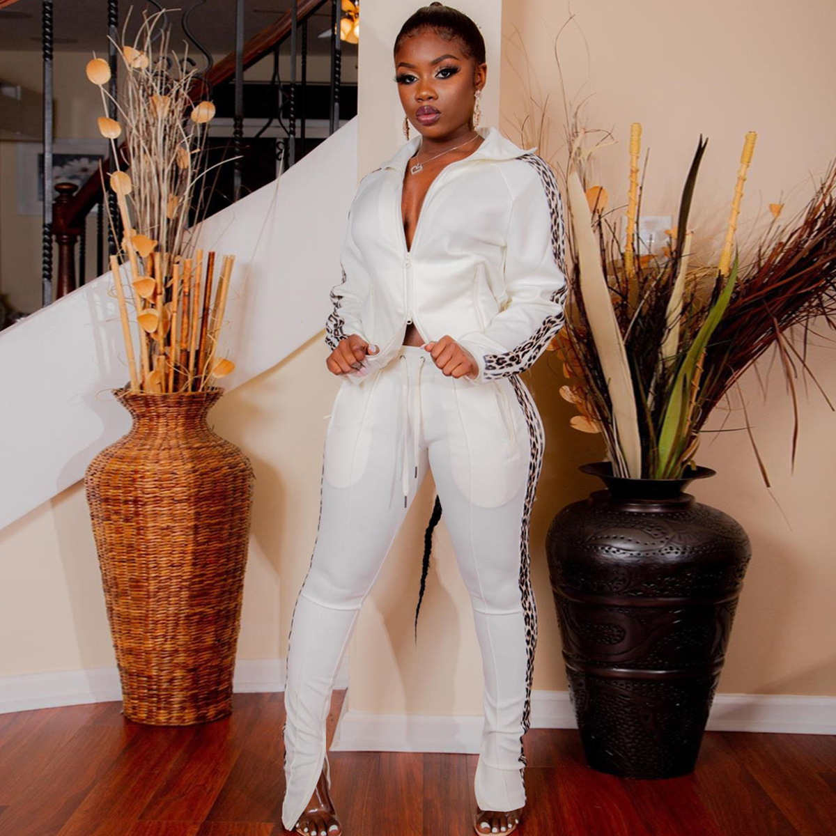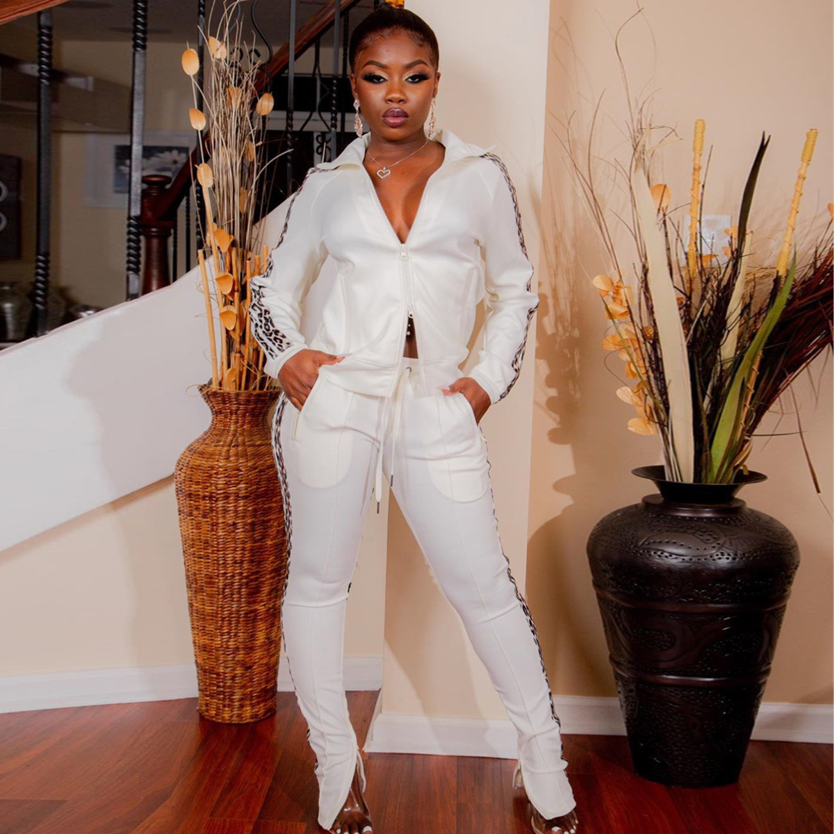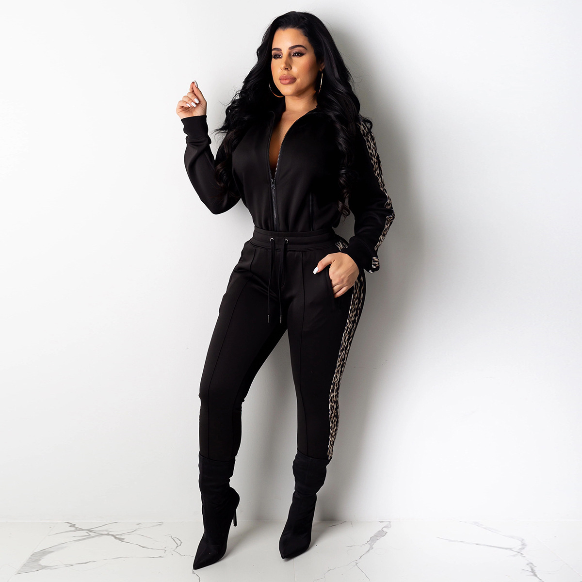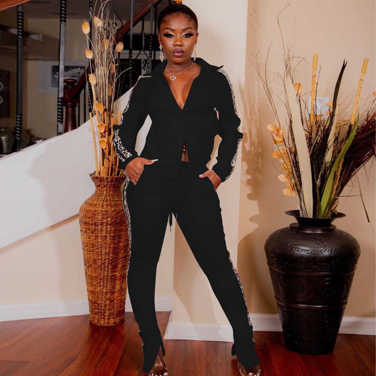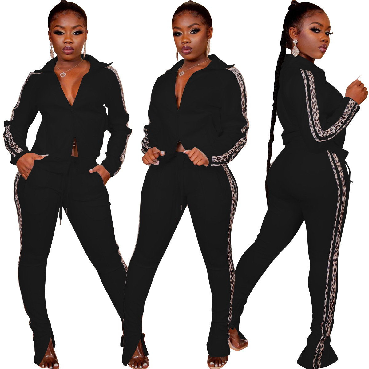 Curve-enhancing Zipper Collard Jacket & Pants Tracksuits