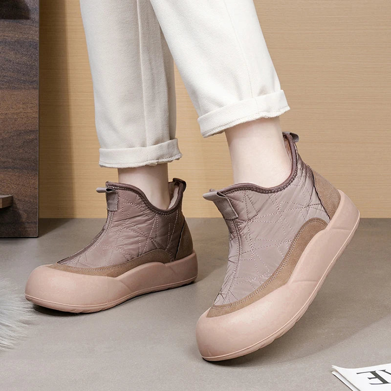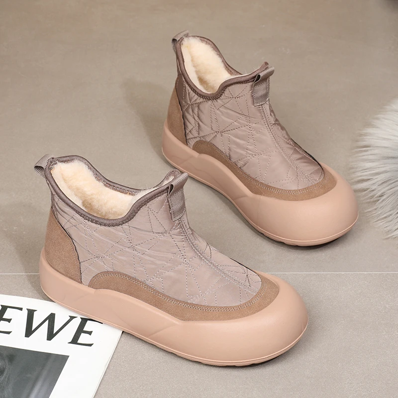 Stay warm & stylish this winter ❄️ with these plush fleece-lined women’s snow boots 👢. Thick bottoms, soft cotton, and cozy comfort for snowy days.