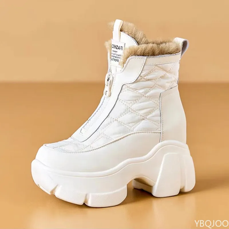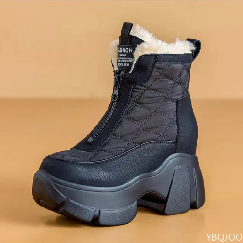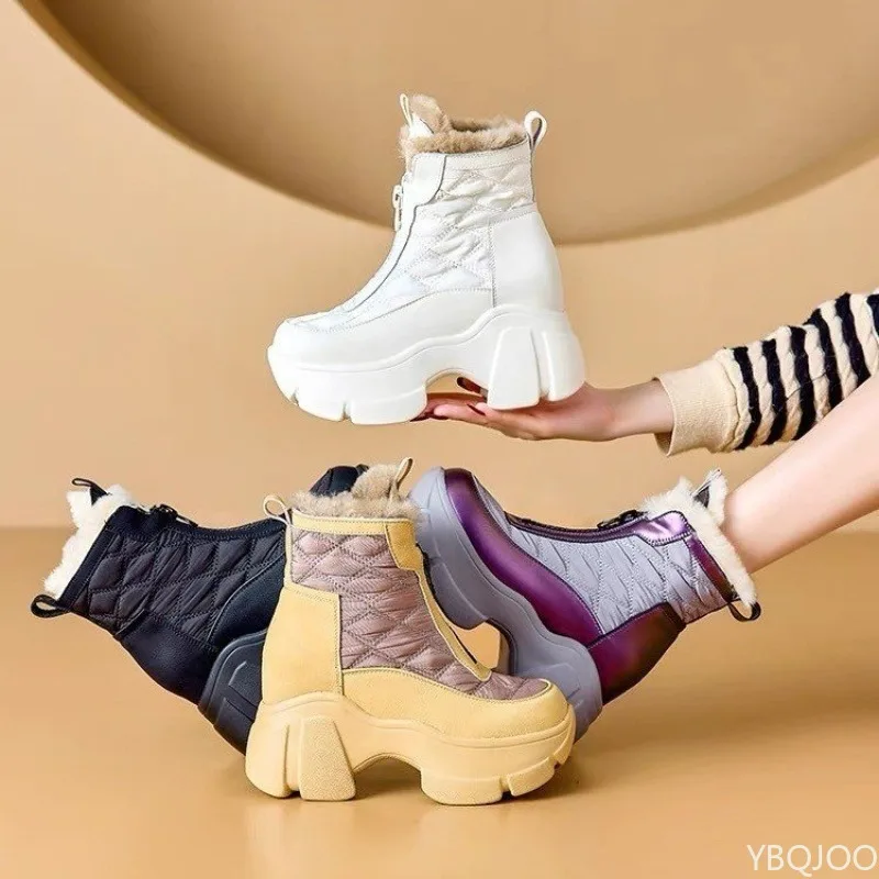 Disfruta de calidez y estilo ❄️ con estas botas de nieve a la moda 👢. Forro de algodón afelpado 🧣, suela gruesa para mayor altura 💃 y un cómodo corte alto, perfecto para paseos invernales. 🌙✨