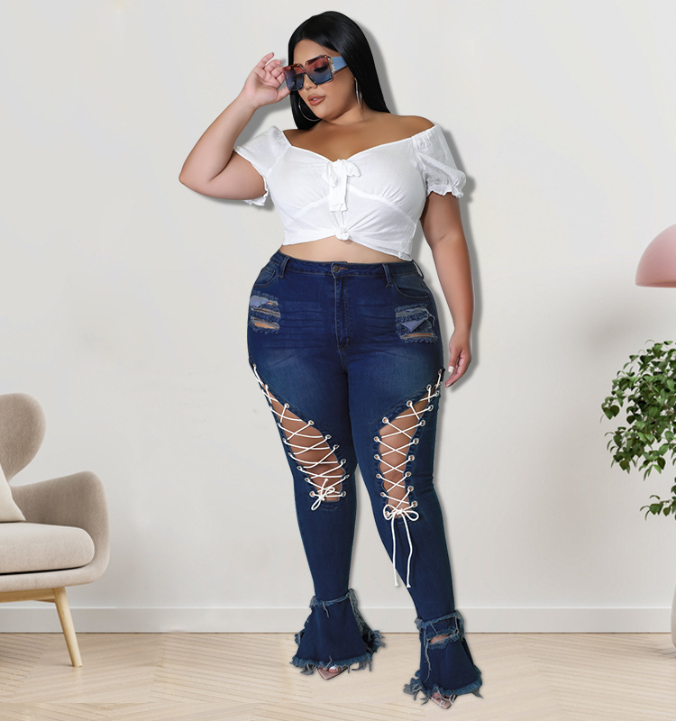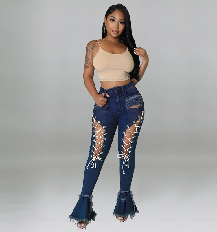 Awe-inspiring Fit Cut Out Tie Rope Slashed Bottom Denim Jeans - Gen U Us Products -