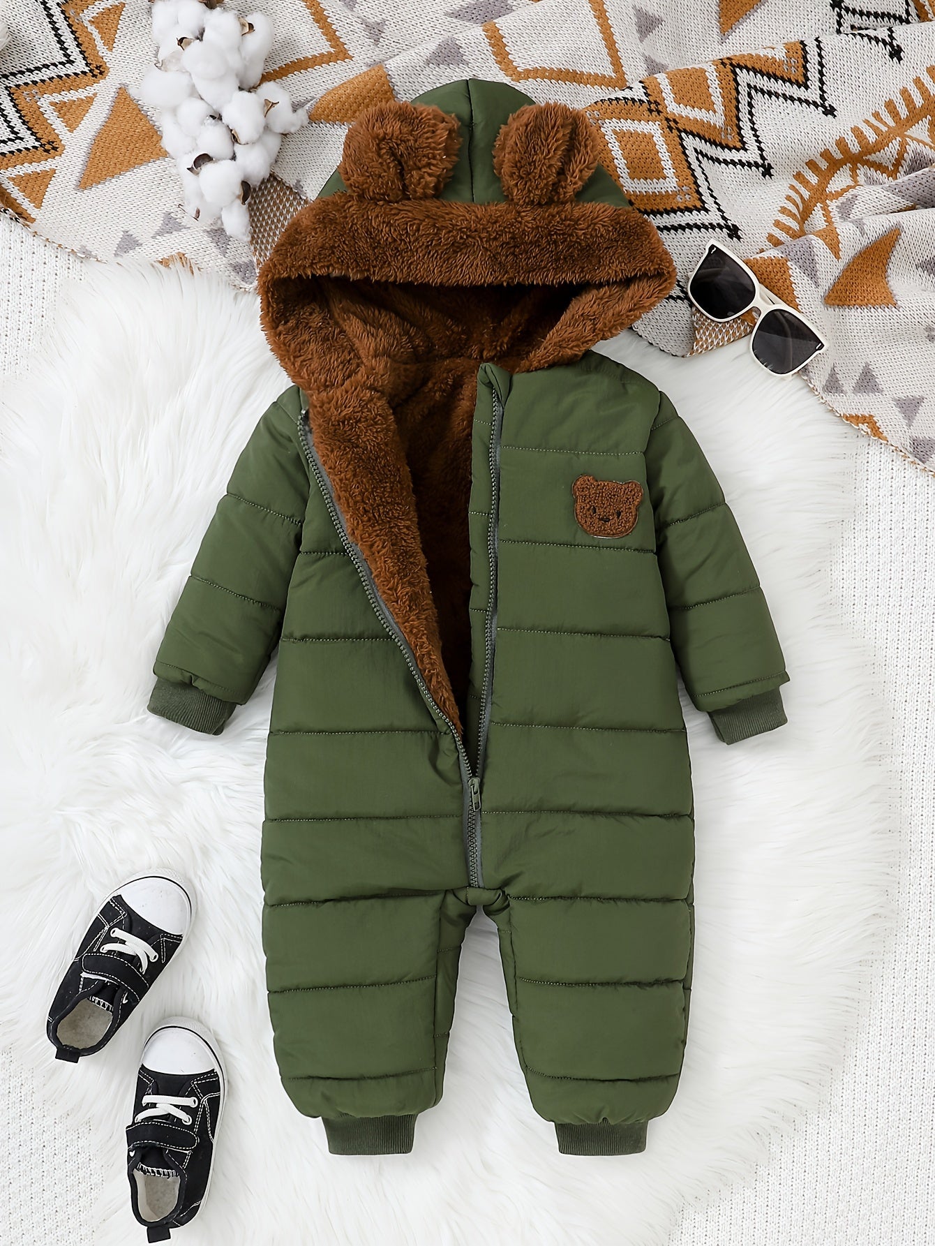 Don't miss out on this winter essential! Order your Warm Plush-Padded Baby Boys Winter Hooded Jumpsuit today and give your little one the gift of comfort and style this season!