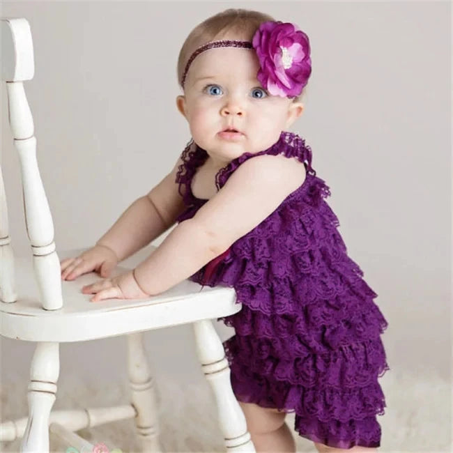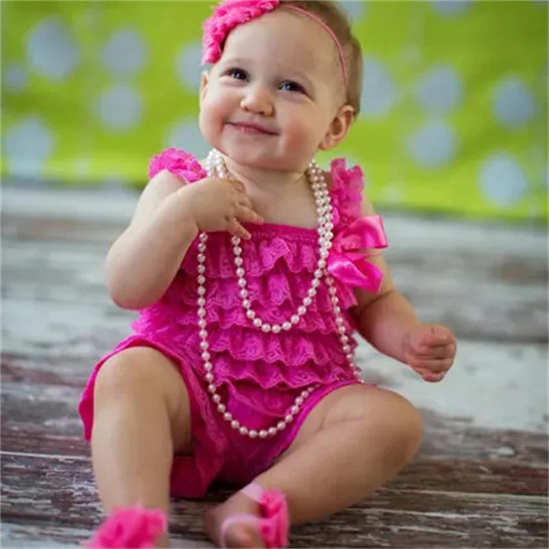 ๐Ÿ‘ถ Ruffle Tied Sleeveless Lace Baby Girls Rompers ๐ŸŒธ Adorable Styleย