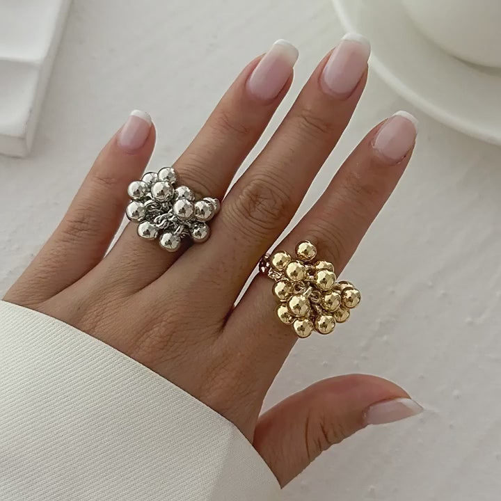 ✨ Stand out with this hollow geometric pearl ring 💍 ultra-chic design for modern elegance and luxury glam vibes 🌟 perfect for every occasion.