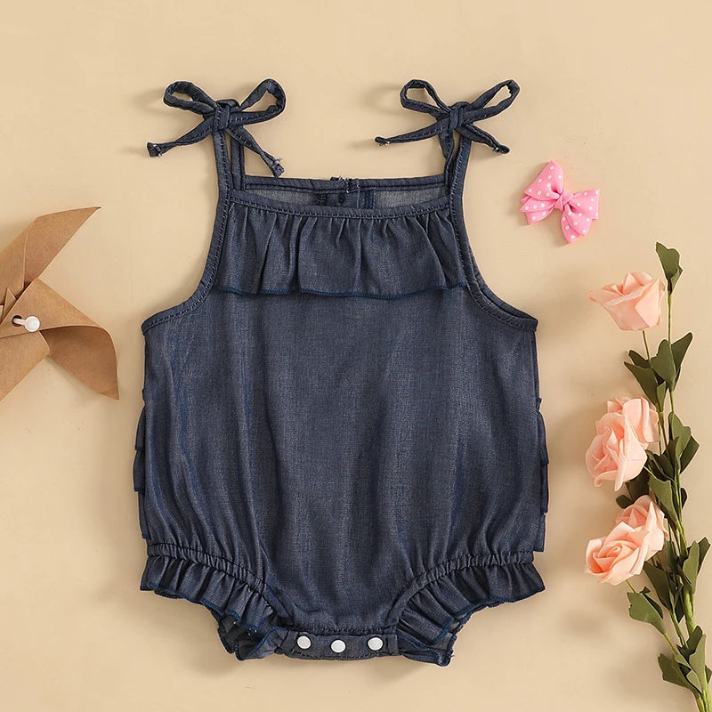 Keep her cool and cute in this tiered ruffle romper with tie-up straps – perfect for playdates under the sun! 🌞👶💗