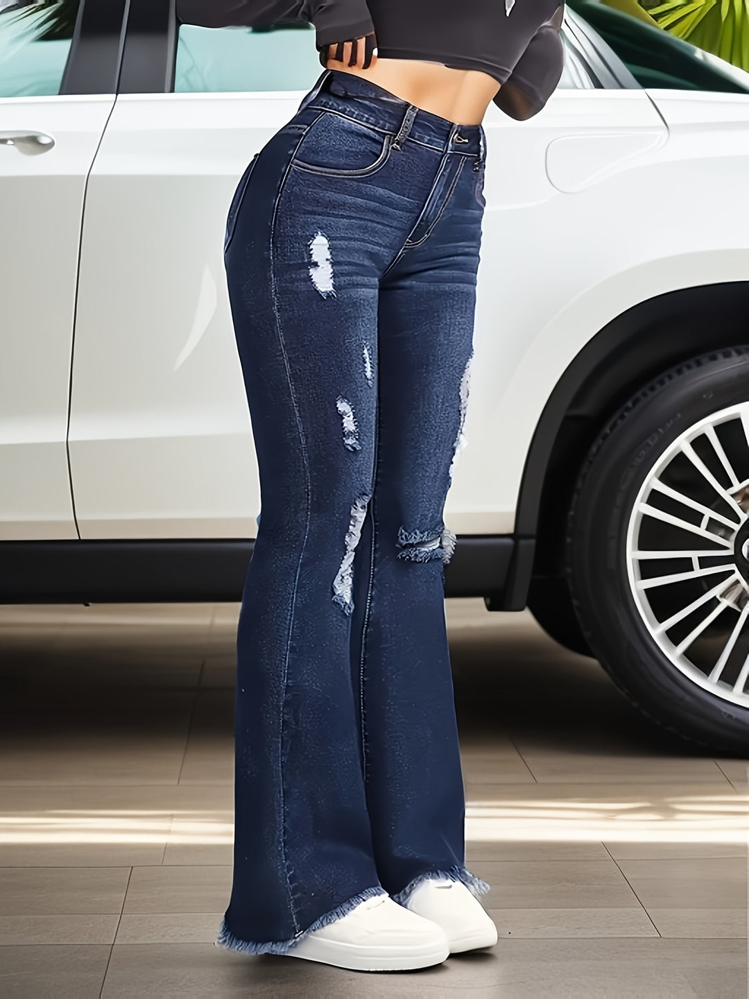 🧿 Curvy-Fit Flared Destroyed Plus Size Women's Denim Jeans – Butt-Lifting Style!