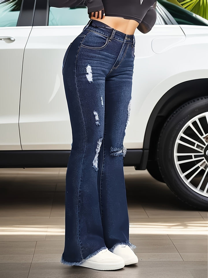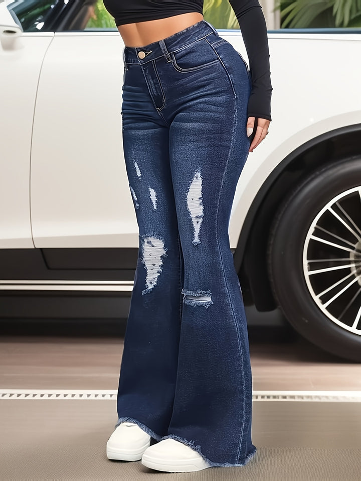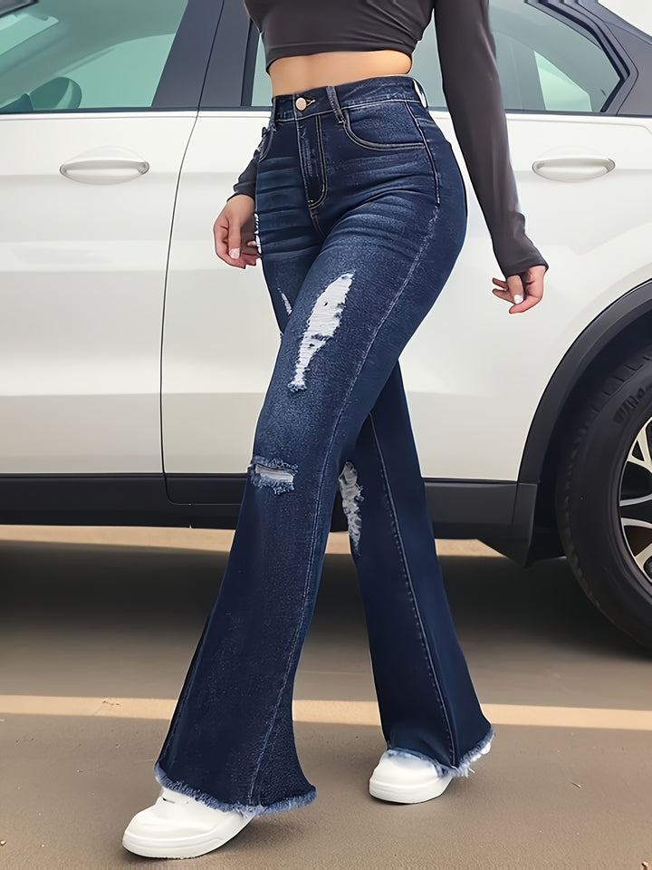 🔥 Turn heads with these curve-hugging, flared & destroyed jeans! Featuring a booty-lifting fit for bold, confident plus-size fashion. 💃