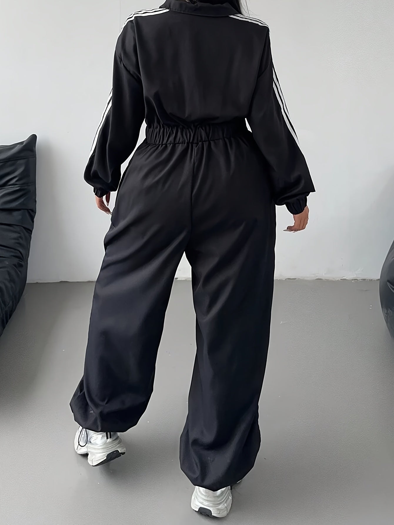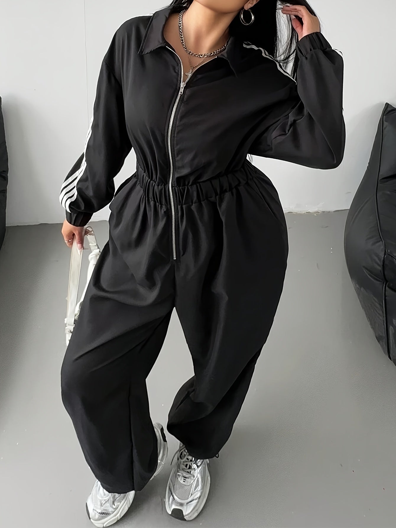 Comfy Loose-Fit Zip-Up Striped Plus Size Jumpsuits