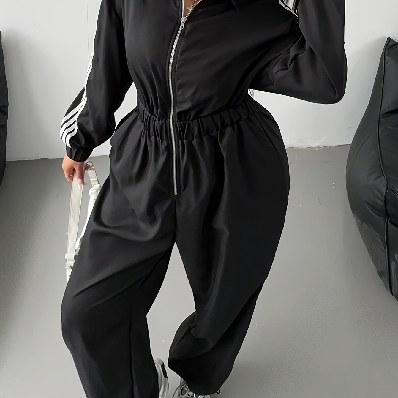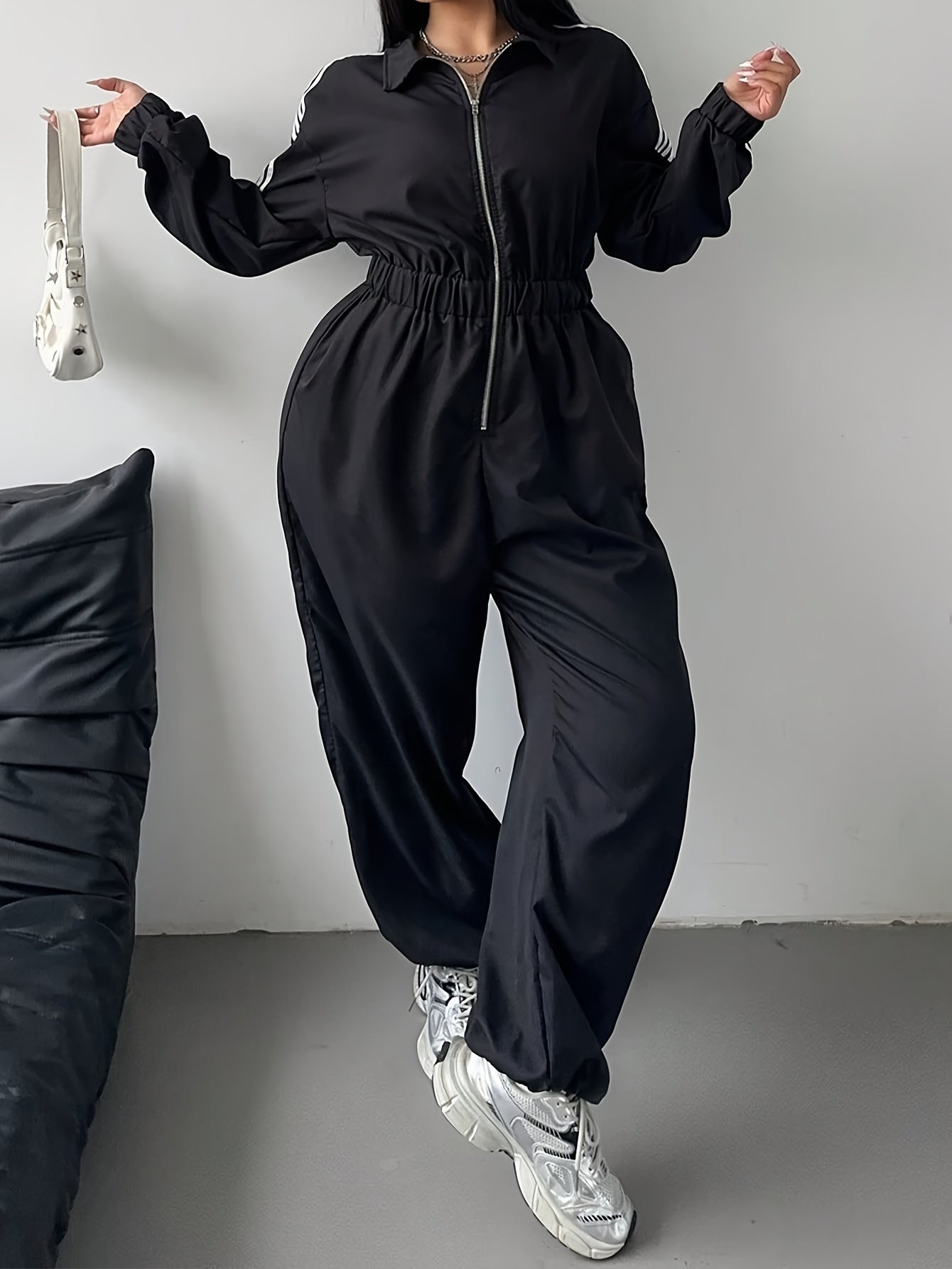 🌈💋 Casual Streetwear Zip-Up Plus Size Women's Jumpsuits 💫 Loose Fit, Comfy & Cool All Day 😎✨