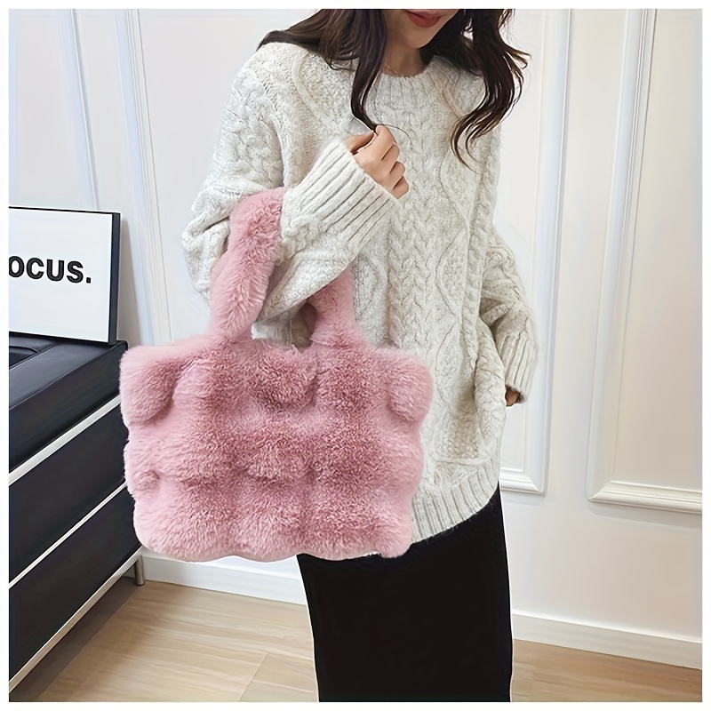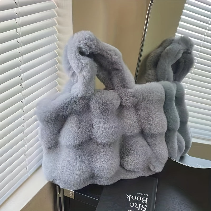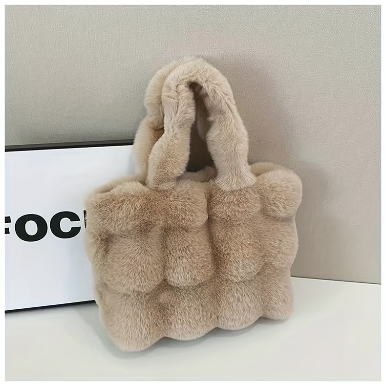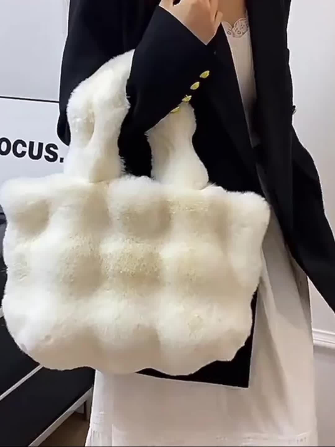 ๐Ÿ’Ž๐Ÿ‘œ Plush Faux Fur Women's Handbags ๐Ÿ’‹ Golden Buttons Glam & Chic Buckle Style โœจ๐Ÿ‘‘