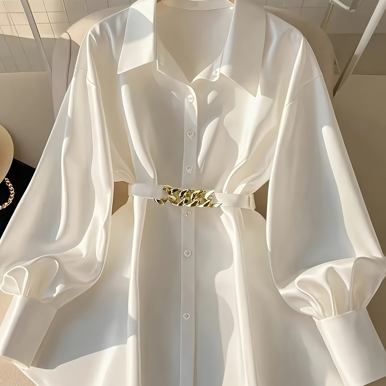 Dollish Long Sleeve Buttons Collar Office Shirts with Metallic Belt - Flossy Mom